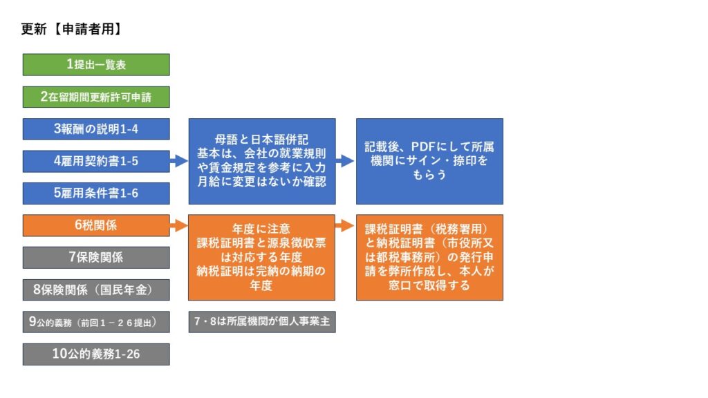 青の書類に関しては、過去2・3年に所属機関で、外国人の申請で提出済みの場合、提出不要。詳細は提出表確認。